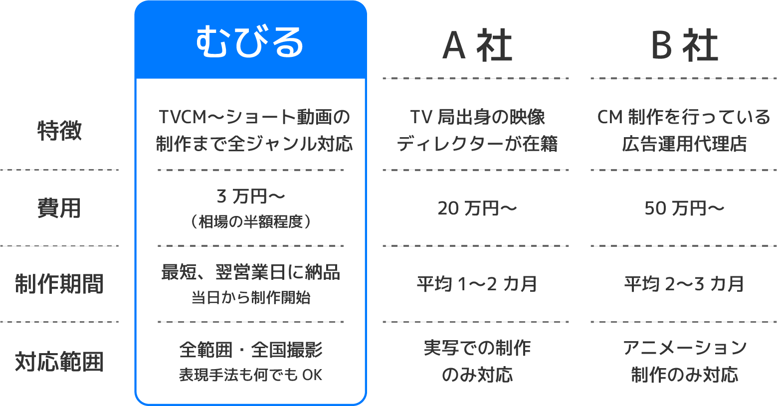 必要なスキルを持っているクリエイターが制作するため、最小限のコストで最大限の品質を実現します。