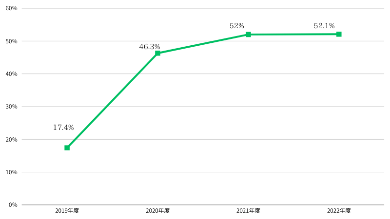 総務省の調査によると、動画配信サービスを使う人は2019年度の17.4%から2022年度は52.1%まで増えています。